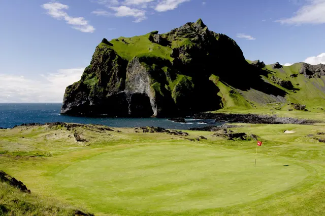 El campo de golf Vestmannaeyar está situado en una de las Islas Vestman, un grupo de islas de la costa sur de Islandia.